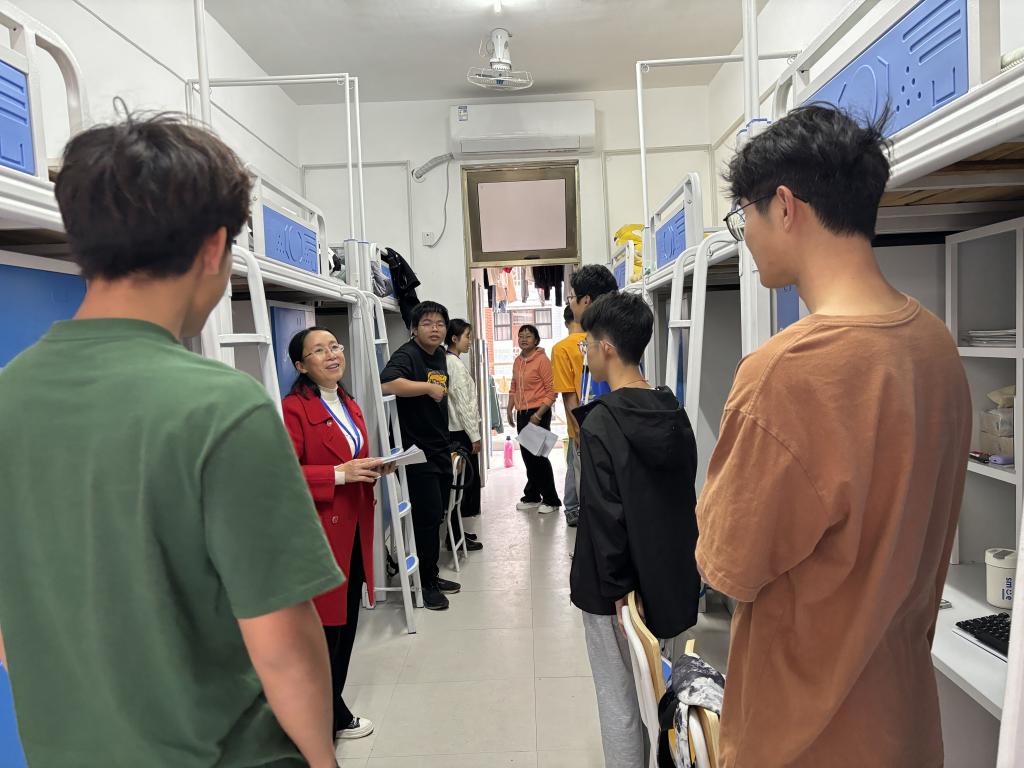 在检查过程中,整体宿舍内务较好,宿舍干净整洁。但有个别宿舍桌面物品摆放比较凌乱、垃圾不能及时清理、床上被子不叠、床帘乱挂乱拉。辅导员要求同学们做好宿舍内务卫生,定期消毒、多开窗通风,以保持宿舍空气流通,杜绝使用违规电器,确保生命财产安全;对问题特别突出的宿舍,老师们耐心指导员工进行宿舍内务整理,与同学们亲切交流,关注同学们目前存在的困难和问题,引导同学们正确处理学习、生活、人际的关系。