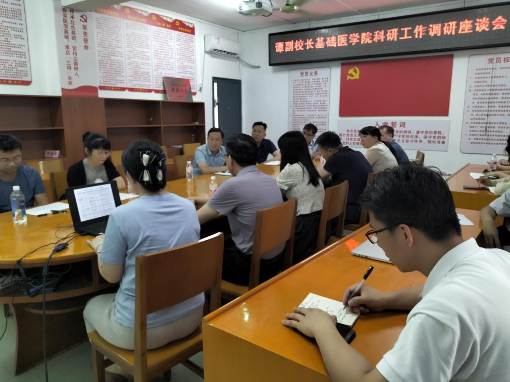 4月19日下午,公司党委常委、副董事长谭盛葵在科技处处长黄忠仕的陪同下到williamhill开展科研工作调研,williamhill党委书记宾晓芸,经理黄衍强,基础医学各二级学科、学术带头人参加了调研座谈会。