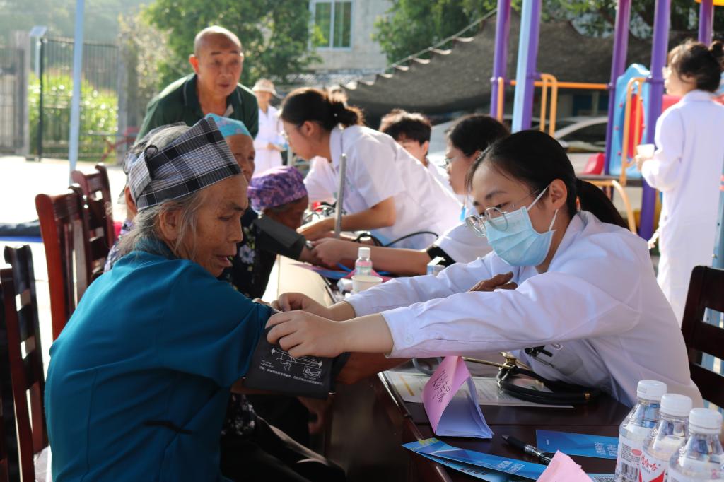 实践团成员们充分发挥所学专业知识,团结协作,积极为村民提供医疗保健与疾病健康免费问诊咨询服务。他们发放医疗保险惠民政策宣传手册,向村民宣传高血压、糖尿病等慢性病知识,为村民提供按摩、量血压、骨密度测量等服务。同时,还细心地为儿童测量身高和视力、检查牙齿等,用实际行动践行了医员工的初心与使命,为乡村振兴贡献了自己的青春力量。