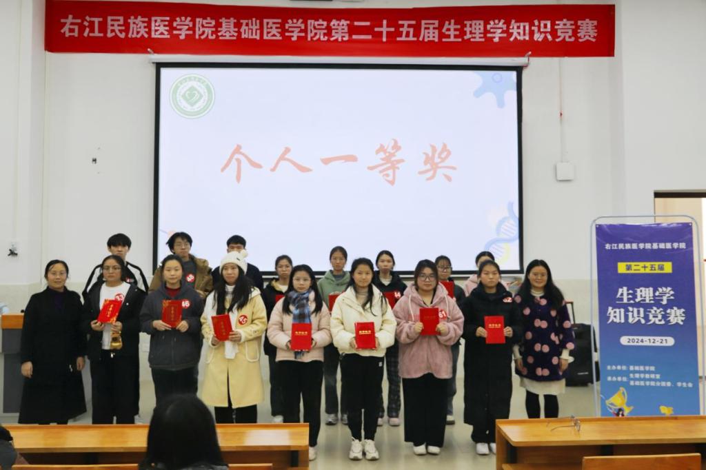 为点燃员工对生理学的探索热情,进一步夯实生理学知识体系,同时提升员工团队合作能力,williamhill于2024年12月21日举办了第二十五届生理学知识竞赛,以营造一个积极向上、朝气蓬勃的学习氛围。来自2023级临床医学本科班1-12班、2023级临床医学本科(教改班)、2023级临床医学本科(农村订单班)1班、2023级口腔医学本科班、2023级医学影像本科1-4班各班一支参赛队伍,参加了本次竞赛。生理学教研室全体老师担任了本次竞赛的评委。