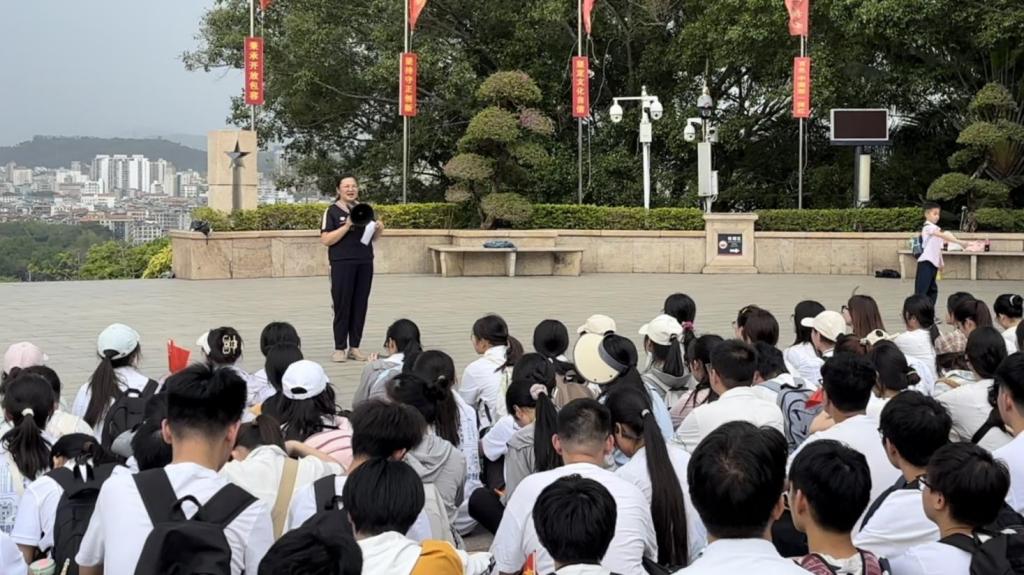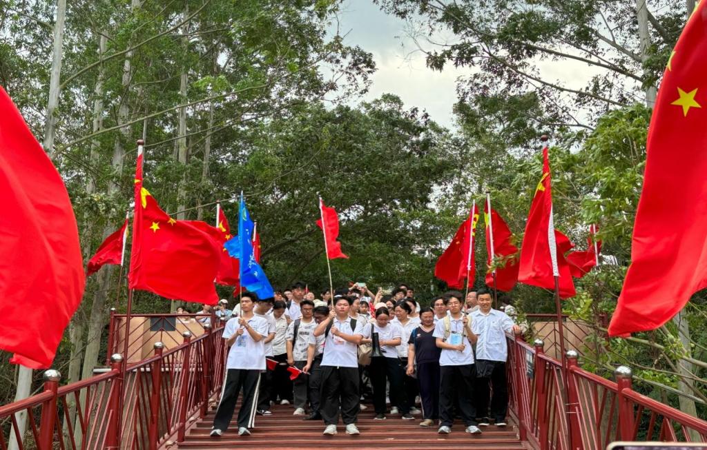 上午10点半左右,百东校区与百城校区师生经过三个半小时的长途跋涉,来到百色起义纪念馆前“胜利会师”。在百色起义纪念馆前,王金花副经理以《传承红色基因 赓续奋斗使命》为题,为师生们讲授了一堂微党课。王副经理从纪念馆陈设进行讲解,引导师生感悟“革命理想高于天”的信仰力量。讲解起义精神,引导师生汲取“越是艰险越向前”的奋斗动力。王副经理希望我们要以“123456”等品牌活动为抓手将红色教育融入思政课堂,以“党团共建”为纽带推动产学研协同育人,像红七军当年发动群众一样,激发师生的内生动力,共同书写公司高质量发展的新篇章,从红色基因中凝聚“众人拾柴火焰高”的团结共识,将“百折不挠、实事求是、依靠群众、团结奋斗”的百色起义精神融入工作,为培养担当民族复兴大任的时代新人接续奋斗!