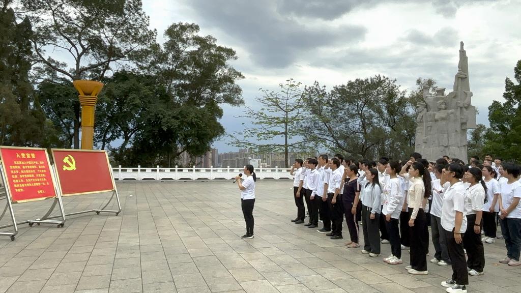 微党课活动结束后,全体师生冒着绵绵细雨、顶着狂风重走红军桥,前往百色起义纪念碑。在百色起义纪念碑前,公司党委组织开展了教师代表向革命烈士敬献花篮,全体师生向革命烈士默哀三分钟、向革命烈士敬献小白花、新党员进行入党宣誓、老党员重温入党誓词等活动。