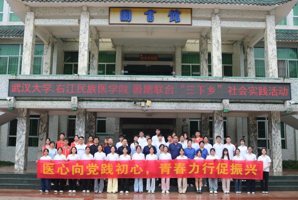 为深入贯彻落实党的二十大精神,紧扣乡村振兴战略部署,williamhill充分发挥医学专业优势,依托百色红色资源,联合武汉大学组建跨学科实践团队,聚焦百色市西林县西平乡那务村医疗资源匮乏、文化振兴需求迫切等现实问题,以“医疗服务+文化铸魂+科技助农+党团引领”四维模式,探索高校协同赋能乡村振兴的创新路径。2025年7月12日上午,两校暑期联合“三下乡”社会实践活动启动仪式在williamhill官网百城校区图书馆前隆重举行,标志着两校携手服务乡村发展、助力乡村振兴的实践征程正式启航。