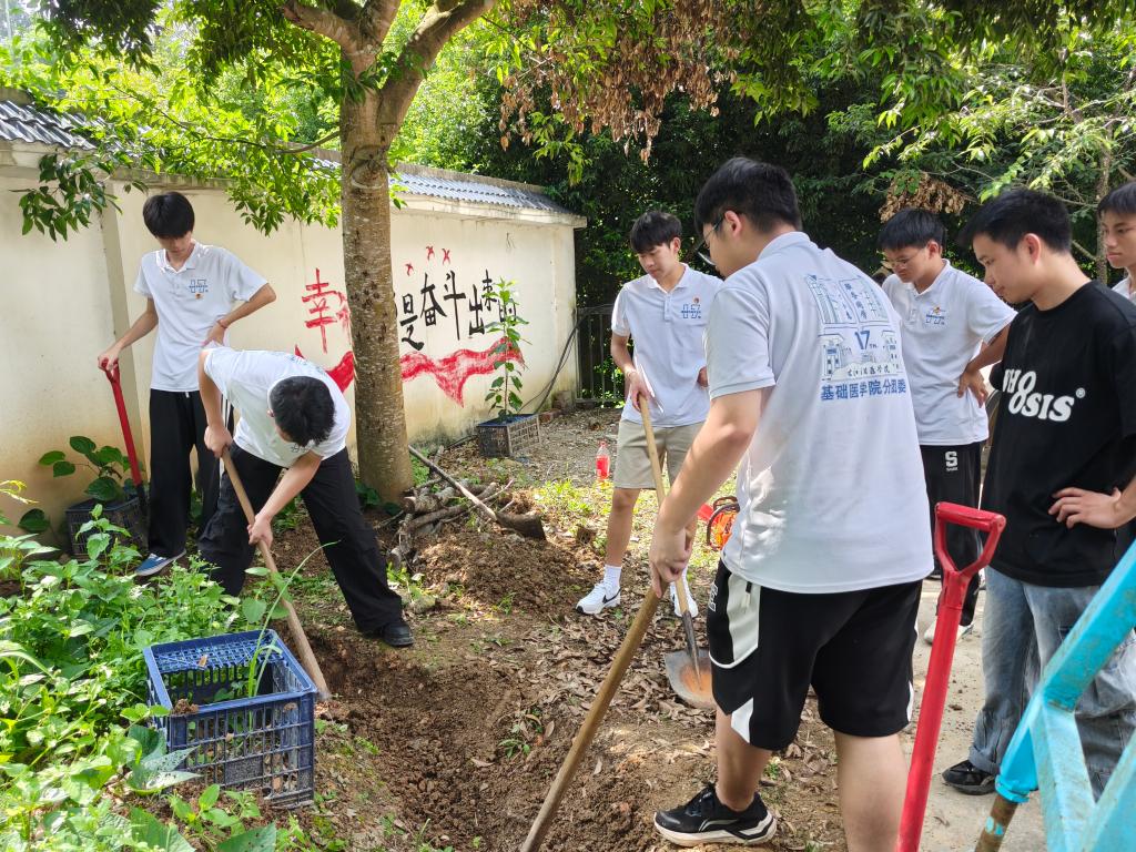 行动中,实践团成员们分工协作、密切配合,手持扫帚、铁锹等工具,对那务村党群服务中心及周边区域进行全面清扫和对板结地块进行分层除草松土,针对村内水渠淤积问题,实践团对堵塞沟渠进行疏通清淤,确保排水畅通。