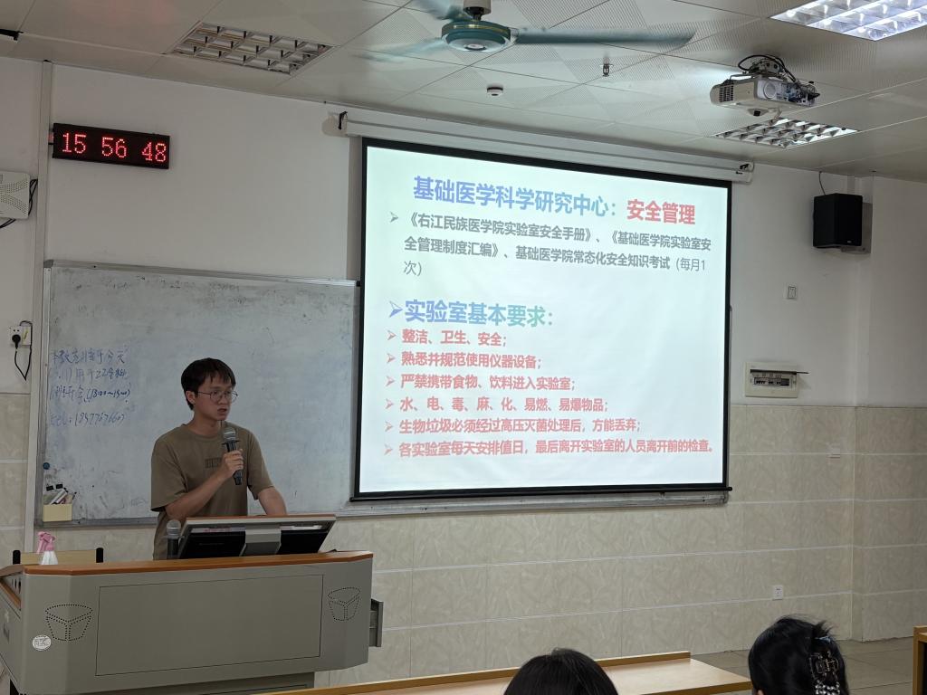 公司党委书记宾晓芸以“不忘初心,传承红色基因;脚踏实地,勇攀科学高峰”为主题,开展理想信念教育专题授课。她结合“九三阅兵”“百色起义”“右医人支援湖北抗疫”等大事件,引导新生将个人理想与人民健康需求紧密结合,练就过硬本领,争做“下得去、用得上、留得住”的高质量应用型医学人才。