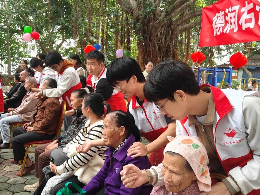 志愿者与老人互动现场