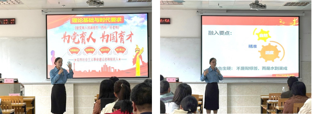 马克思主义公司张琴老师以“医学伦理与思政融合”为核心展开分享,结合新时代医学教育要求,深入阐释医学伦理与思政教育的内在契合点。她强调,诚信是医学伦理的核心准则,更是思政教育的重要内容,医学教学中需引导员工树立“敬畏生命、诚信行医”的职业理念,将医学伦理规范转化为思政育人的鲜活素材。同时,张琴老师以具体教学案例为依托,讲解如何在解剖学、病理学等基础医学课程中,将医学伦理知识与思政元素有机结合,让员工在掌握专业知识的同时,深化对职业伦理与社会责任的认知,为在场教师提供了兼具实用性与可操作性的“医学伦理+思政”教学思路,助力教师在课程教学中深化员工对职业伦理与社会责任的认知。