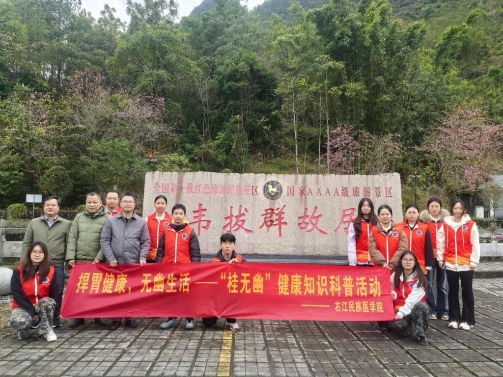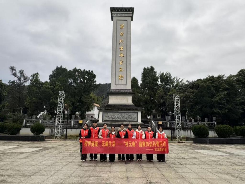 本次活动中,桂无幽科普团队走进革命根据地,一方面面向当地群众开展幽门螺杆菌防治知识科普宣讲,提升基层群众健康防护意识;另一方面组织团队成员重温红色历史、接受革命爱国主义教育。活动以健康科普为载体,以红色教育为内核,实现了健康知识普及与革命传统教育的有机融合,有效助力群众增强健康意识,厚植家国情怀,共同铸牢中华民族共同体意识。