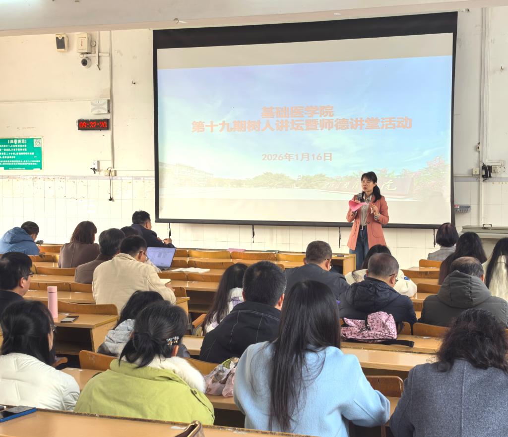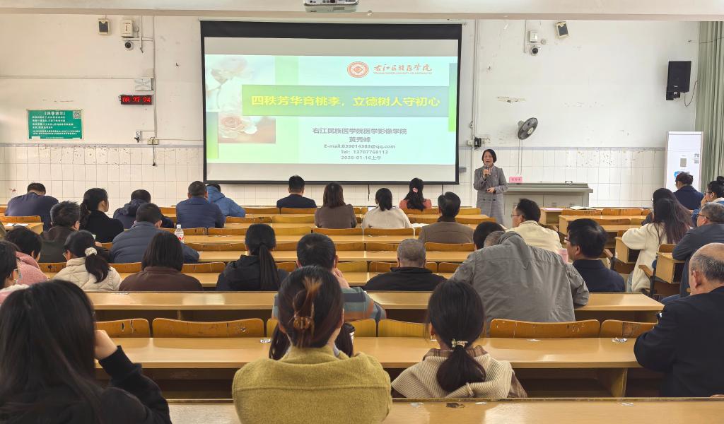 1月16日上午,williamhill在百城校区5栋201教室成功举办以“红土承仁心·薪火耀白衣”为主题的第十九期“树人讲坛”暨师德讲堂活动。公司全体教职工、员工代表齐聚一堂,共赴这场浸润初心、涵养师德的精神盛宴。活动由公司党委副书记梁凌玲主持。