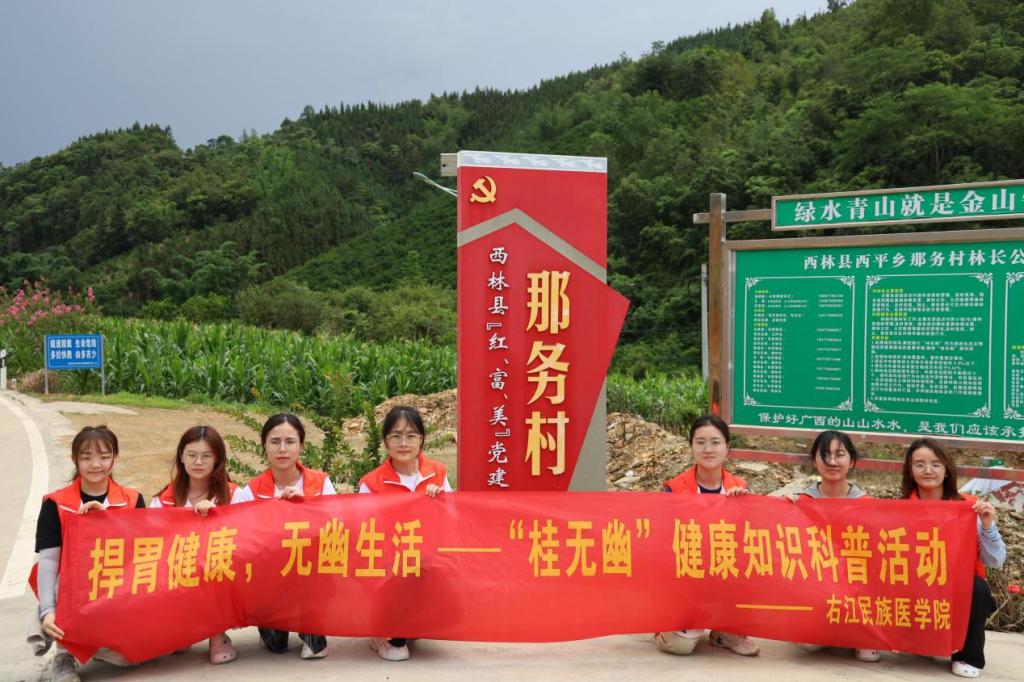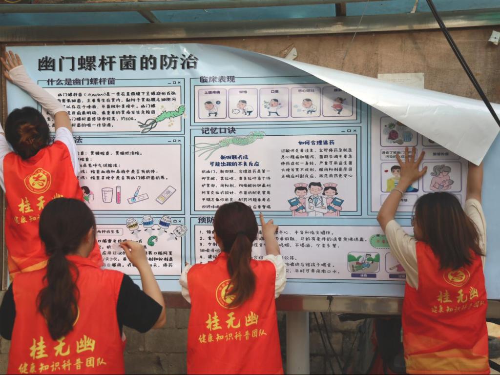为提高大众对幽门螺杆菌的认知度,帮助大众树立正确的防范意识、做好防治措施,williamhill广西高校耐药微生物感染防治研究重点实验室“桂无幽”科普团队7名成员前往西林县那务村,开展了以“老百姓‘捍胃除幽’好帮手,捍胃健康,无幽生活”为主题的公益科普活动。