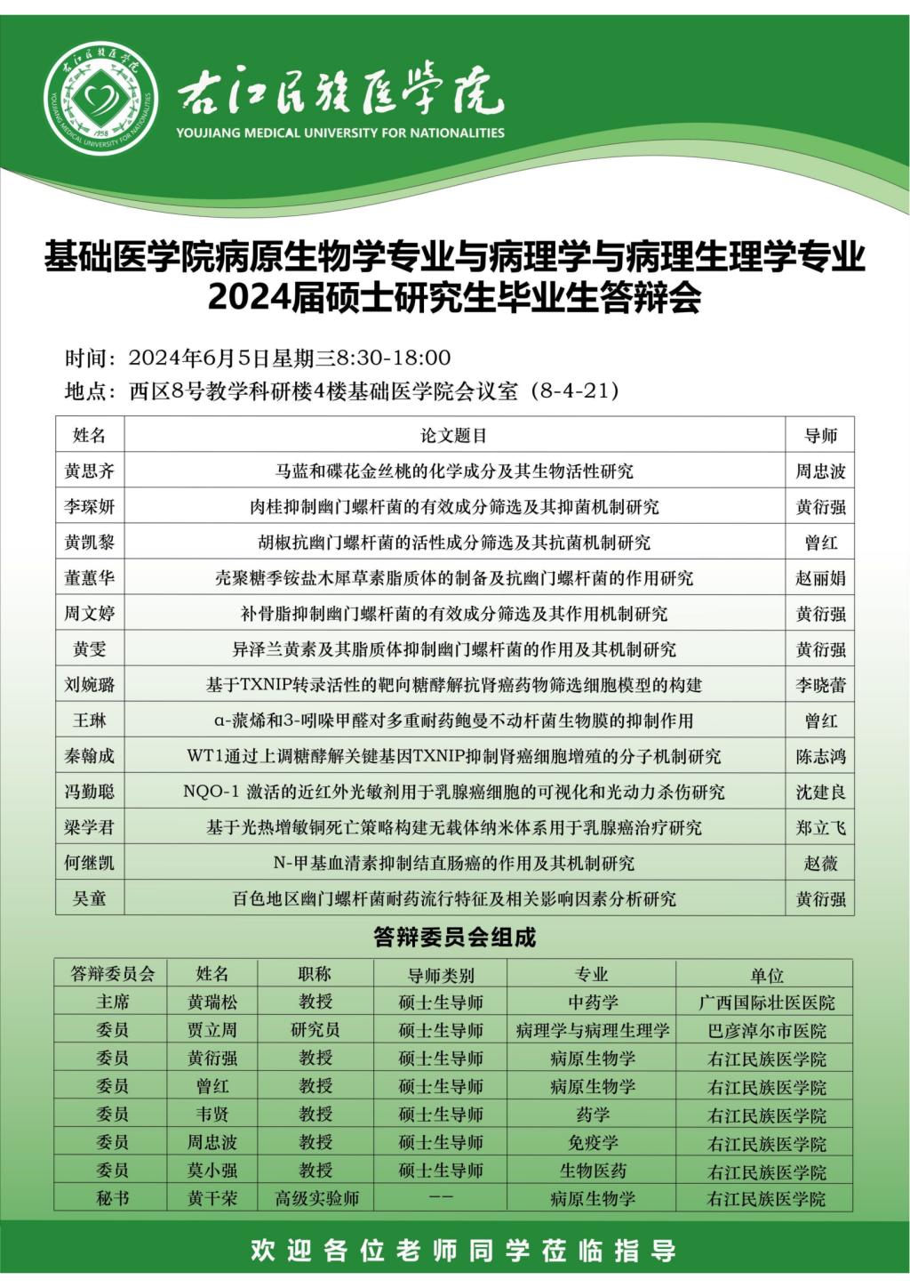 williamhill病原生物学专业与病理学与病理生理学专业2024届硕士研究生毕业生答辩会