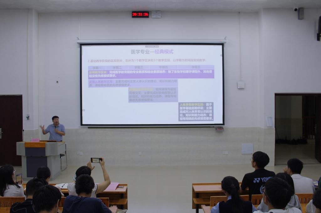 此次专题讲座采用线上线下相结合的形式进行,除线下主会场参会人员外,各班级员工在各分会场通过腾讯会议参会。讲座内容涵盖了对医学教育的发展、当下对临床执业医师的基本要求、医学专业的经典教学模式的介绍,以及对建设“小班化”教学进行指导。