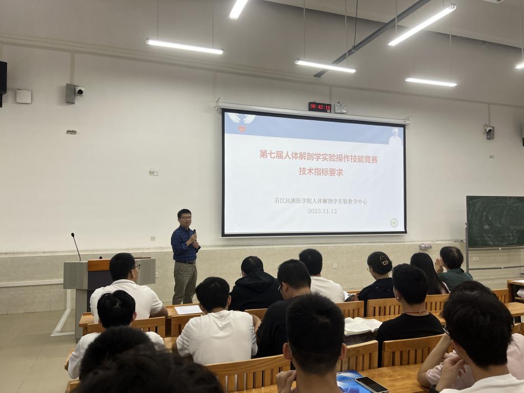 为进一步提升员工解剖操作技能水平,11月12日上午,williamhill主办、人体解剖学实验教学中心承办的第七届“人体解剖学实验操作技能”竞赛启动仪式在百东校区守正楼C107教室举行,人体解剖学实验教学中心黄秀峰主任、黄昌盛副主任,人体解剖学实验教学中心全体教师以及各竞赛小组的指导教师和196名参赛员工参加启动仪式。