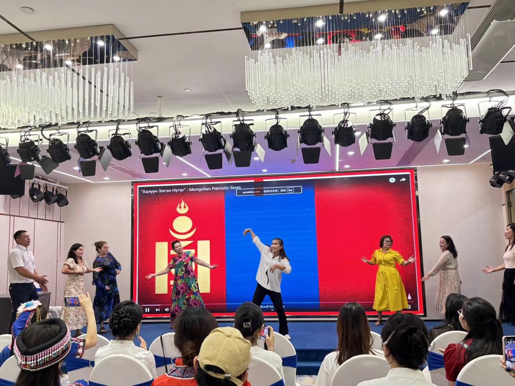 热身活动后,基础医公司师生与学员们共同欣赏丰富多彩的文艺节目。基础医公司师生一曲广西当下最劲爆的舞蹈《科目三》开场,瞬间点燃了现场的热情,大家掌声雷动,共同沉浸在欢乐的海洋。随后,国际班学员们带来了蒙古族雄浑的歌声与舞蹈、基础医学院师生维吾尔族灵动的新疆舞,展现了不同民族文化的独特魅力,也激发了全场师生的共鸣与共舞;基础医学院师生精心准备的《日不落》歌伴舞,更是传递了和平与希望的愿景,强调了构建人类命运共同体的时代呼唤。